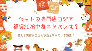 福袋2026 ペットの専門店コジマ福袋2026中身ネタバレは?使える内容か口コミで当たりハズレを調査! ペットのコジマ福袋2026の中身予想・過去実例・口コミ・予約方法を整理。使える当たり袋の見極め方や買い方のコツもチェック。 2025.10.07 2025.10.08 福袋2026