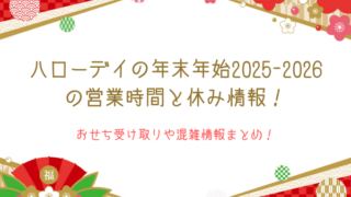 ハローデイの年末年始の営業時間や休業日、初売りの傾向を過去実績から整理。おせちやオードブル、クリスマスケーキ、福袋情報にも触れつつ、年末年始を計画しやすい内容にまとめています。