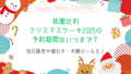 店頭予約はまだ発表待ちですが、例年通りなら12月15日前後まで受け付けの可能性が高め。