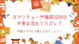 2026年版は、コラボテーマに合わせたかわいらしい雑貨がそろった3点セットです。